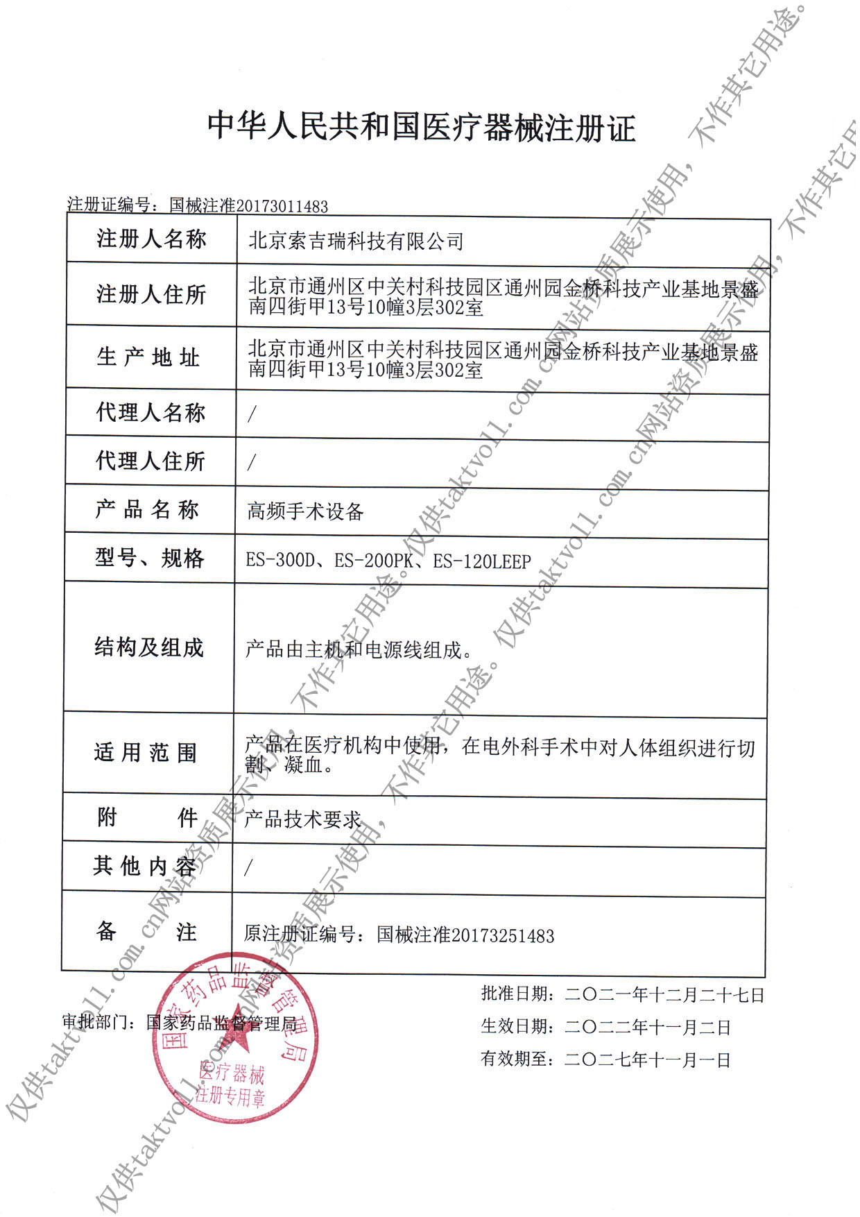 *高频手术设备属于手术类产品,其禁忌情况与所实施的电外科手术有关,设备自身并没有绝对的禁忌症。对于装有植入式心脏起搏器或其他金属植入物的患者应慎重,避免高频电流通路流经植入物附近。