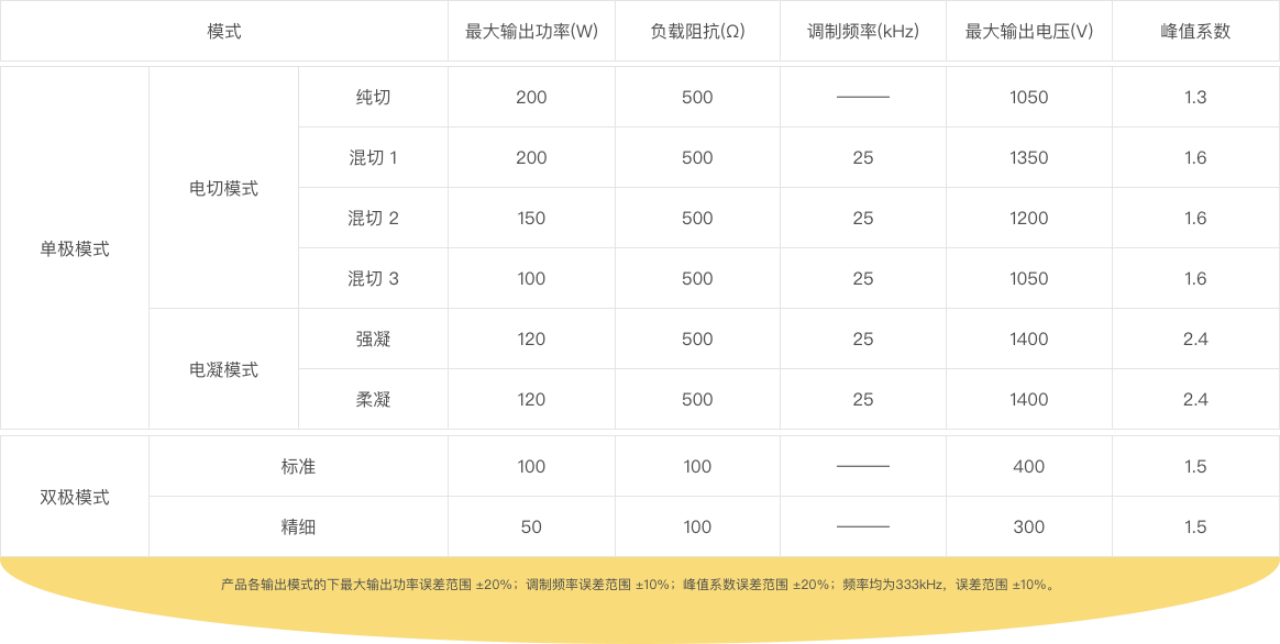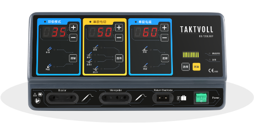 本手术设备的单极模式包含单极电切和单极电凝模式;双极模式包含标准和精细,输出功率均可调。