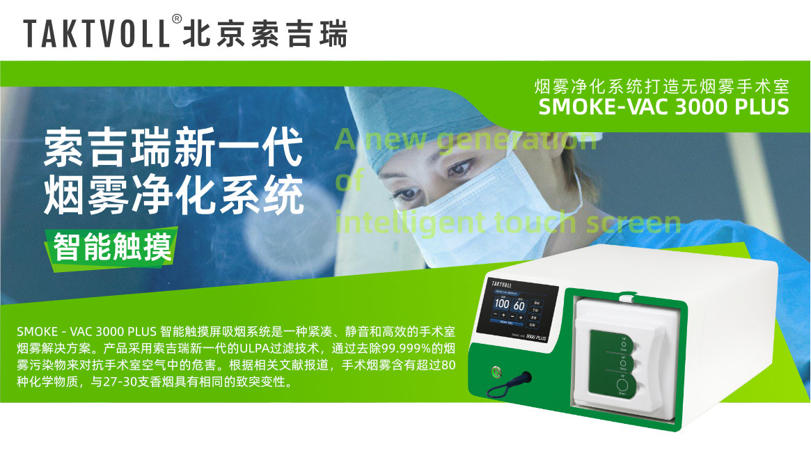SMOKE - VAC 3000 PLUS 智能触摸屏吸烟系统是一种紧凑、静音和高效的手术室烟雾解决方案。产品采用乐玩LEWIN新一代的ULPA过滤技术,通过去除99.999%的烟雾污染物来对抗手术室空气中的危害。根据相关文献报道,手术烟雾含有超过80种化学物质,与27-30支香烟具有相同的致突变性。