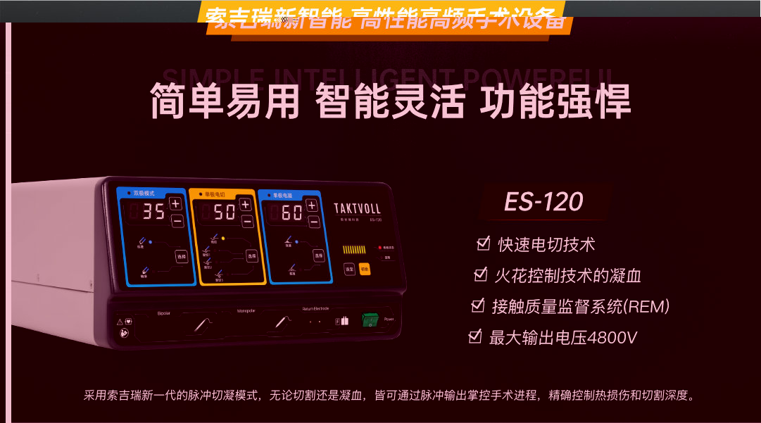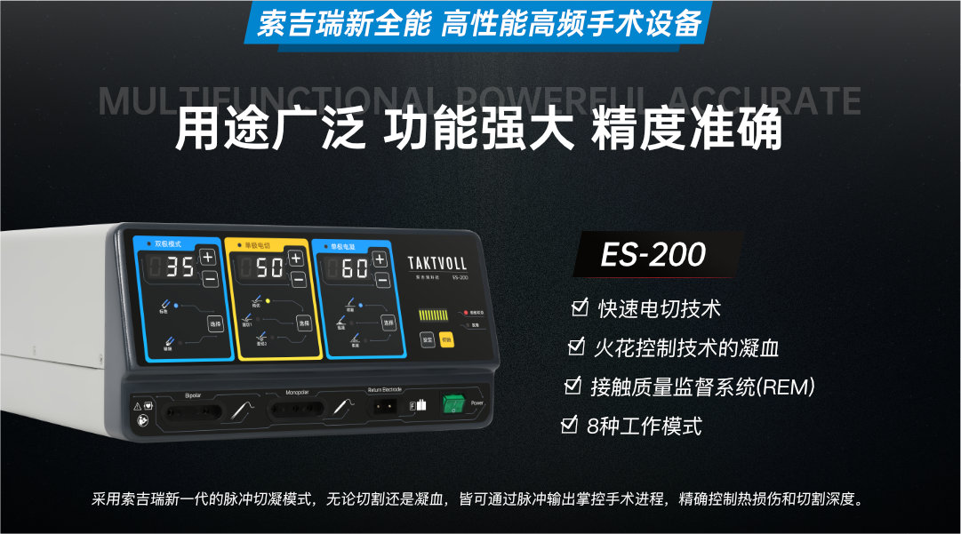 一款具有十种输出波形(7种单极和3种双极),并具有输出记忆功能的高频手术设备,通过多种手术电极,为外科手术中提供了安全有效的应用。